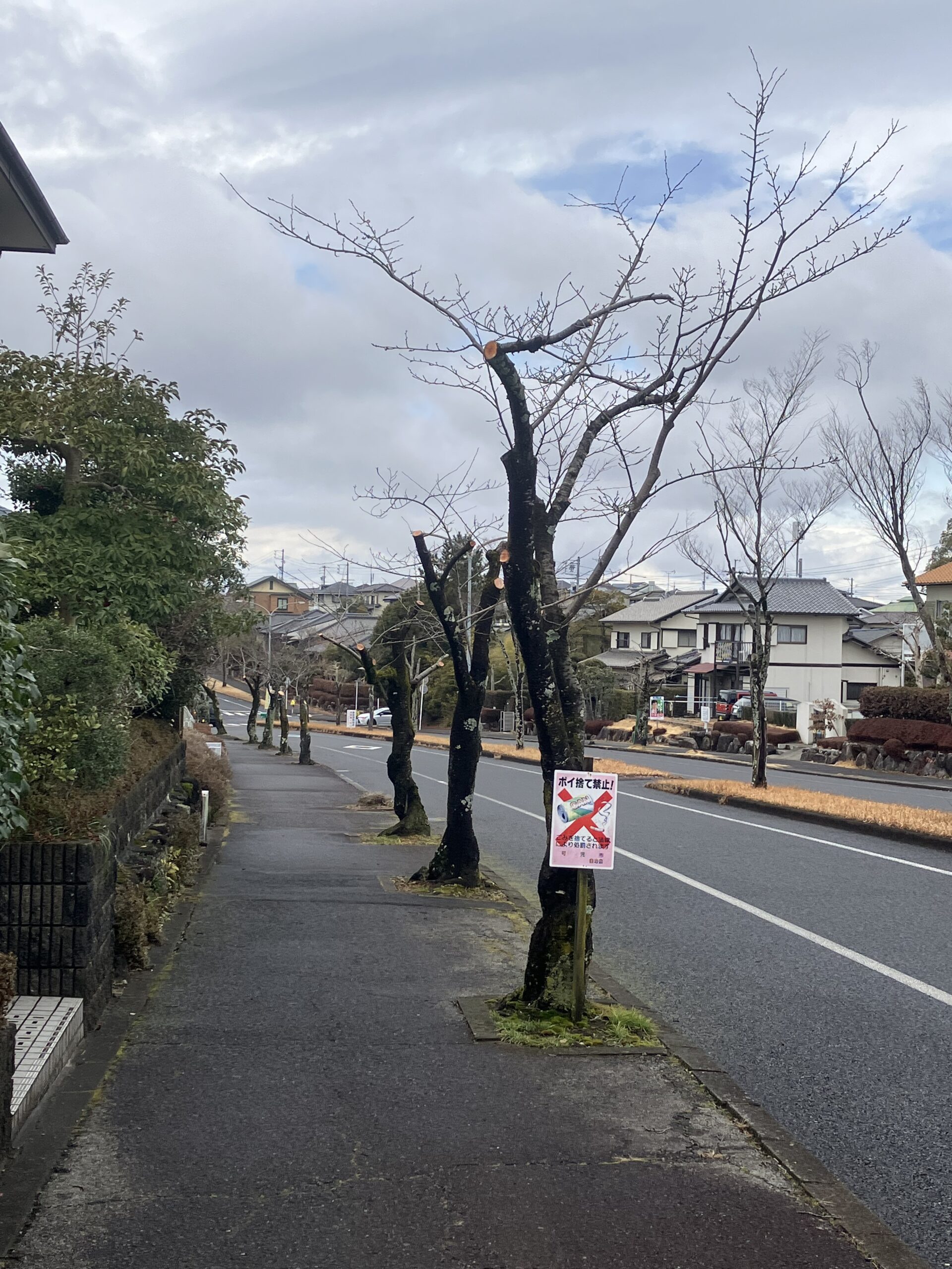 先日町の桜の木の剪定がありまして、 悲しいくらいに切られているのを見て、 当店の前の桜は、それほど切らないでほしいとお願いして 他よりは切れなくて済みました。