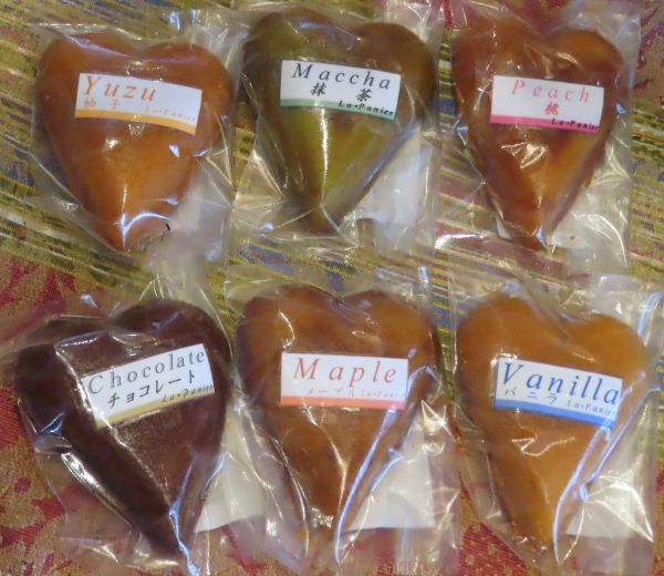 バニラ・柚子・桃・抹茶・チョコ・メープルの6種類の味をご用意し、