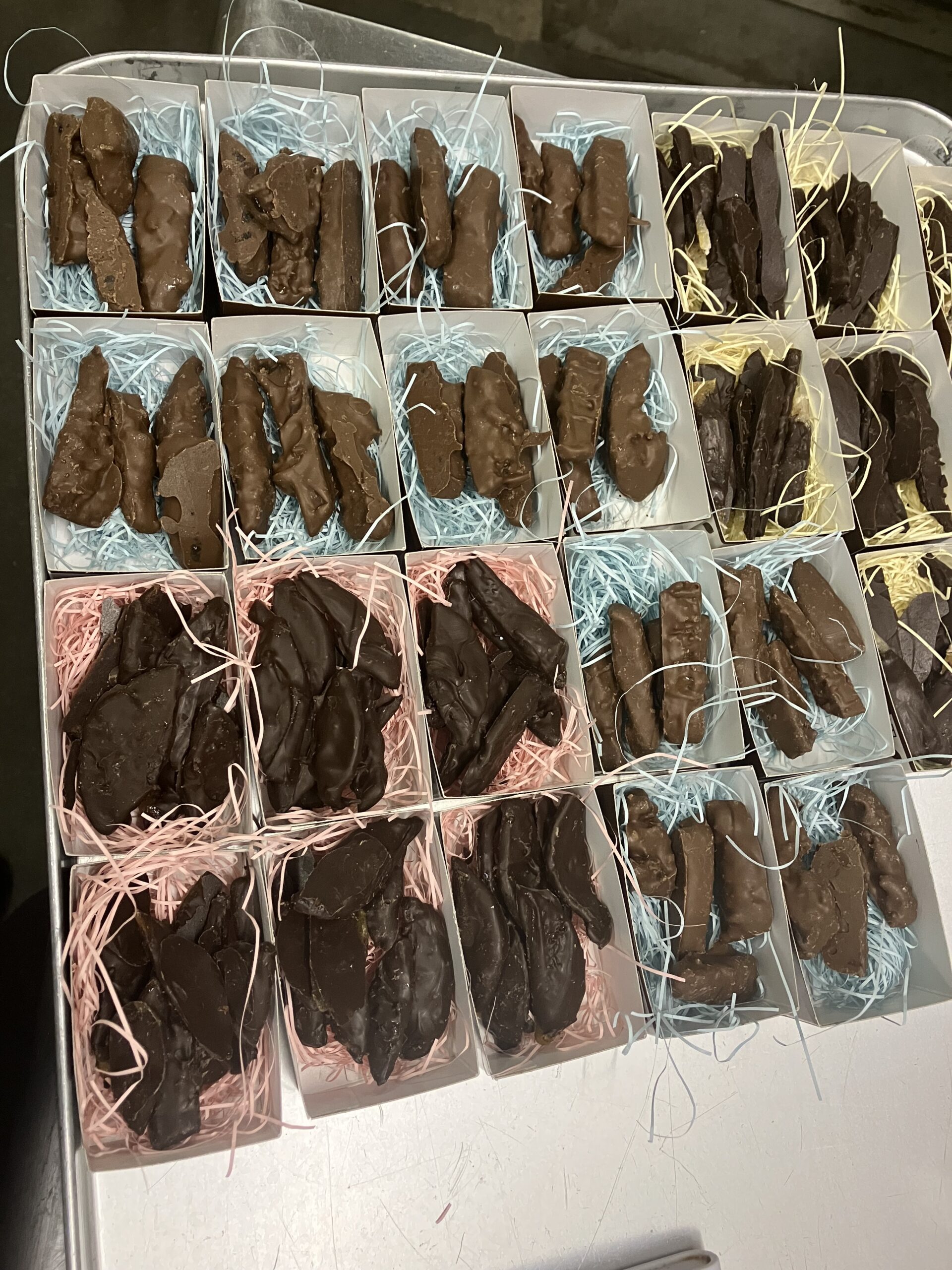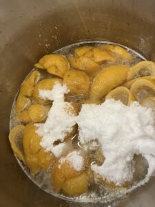 柚子の仕込み 11月下旬 関市上之保で柚子が最盛期になると買いに行きます。 皮をお湯で煮て苦味や灰汁を取り除き、砂糖で煮て一定の糖度になったら出来上がり。 焼き菓子やチョコ掛けにして製品にしていきます。