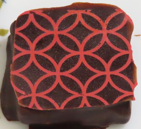 ドラゴンフルーツ:ホワイトチョコの生チョコをドラゴンフルーツジャムで味を付けました。