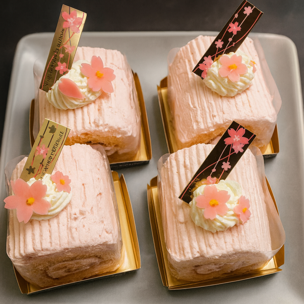 春限定のロールケーキ。桜の香りがやさしく広がるクリームと、